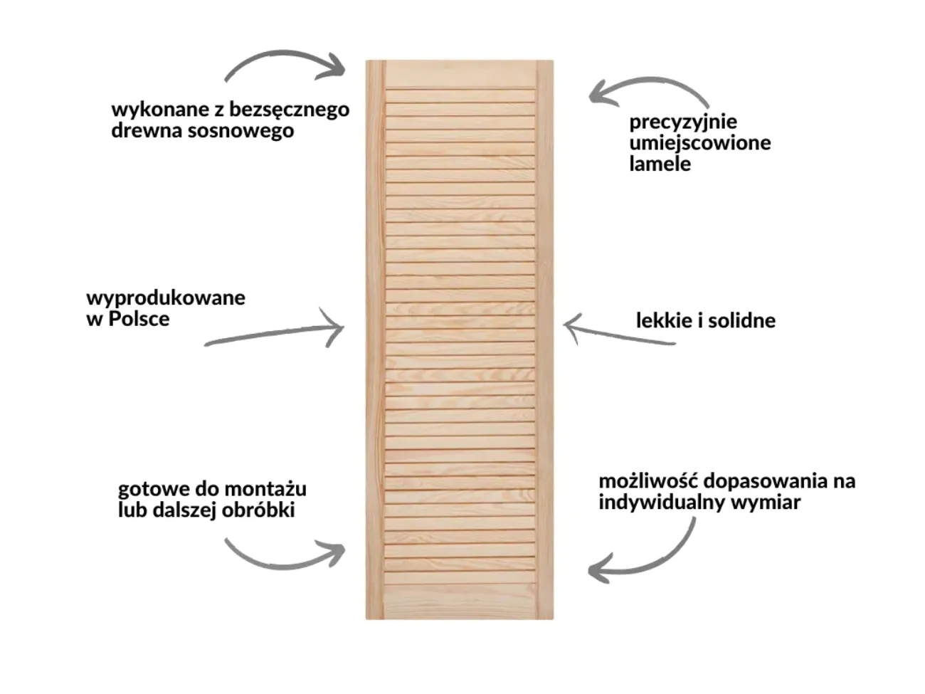 Ta oferta obejmuje: Drzwiczki ażurowe 44,4 x 242,2cm - sosnowe lamel 32mm (szerokość x wysokość).